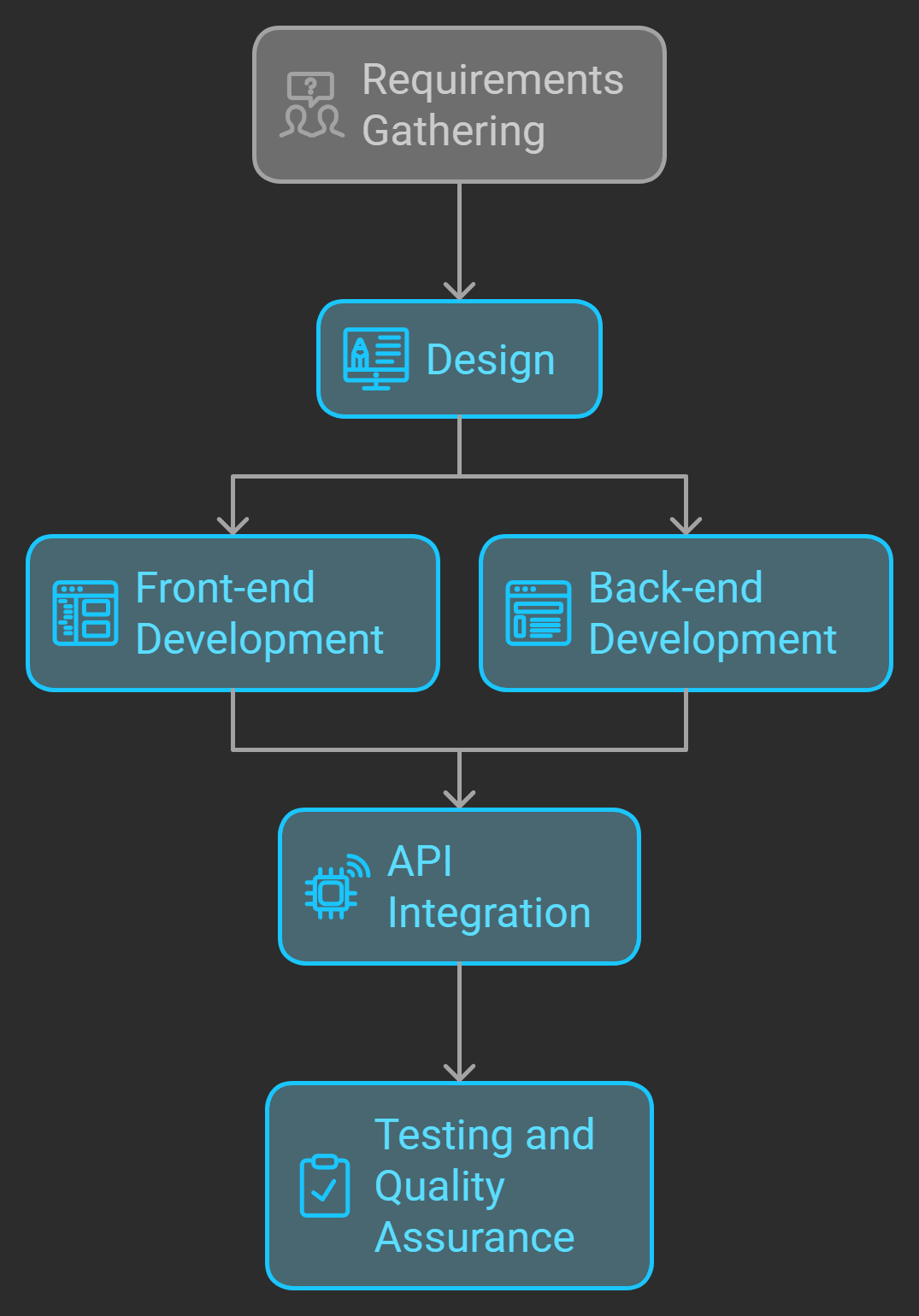 3. Front-end Development: Implementation of the designed UI/UX using HTML, CSS, JavaScript, and Flutter for mobile app development.