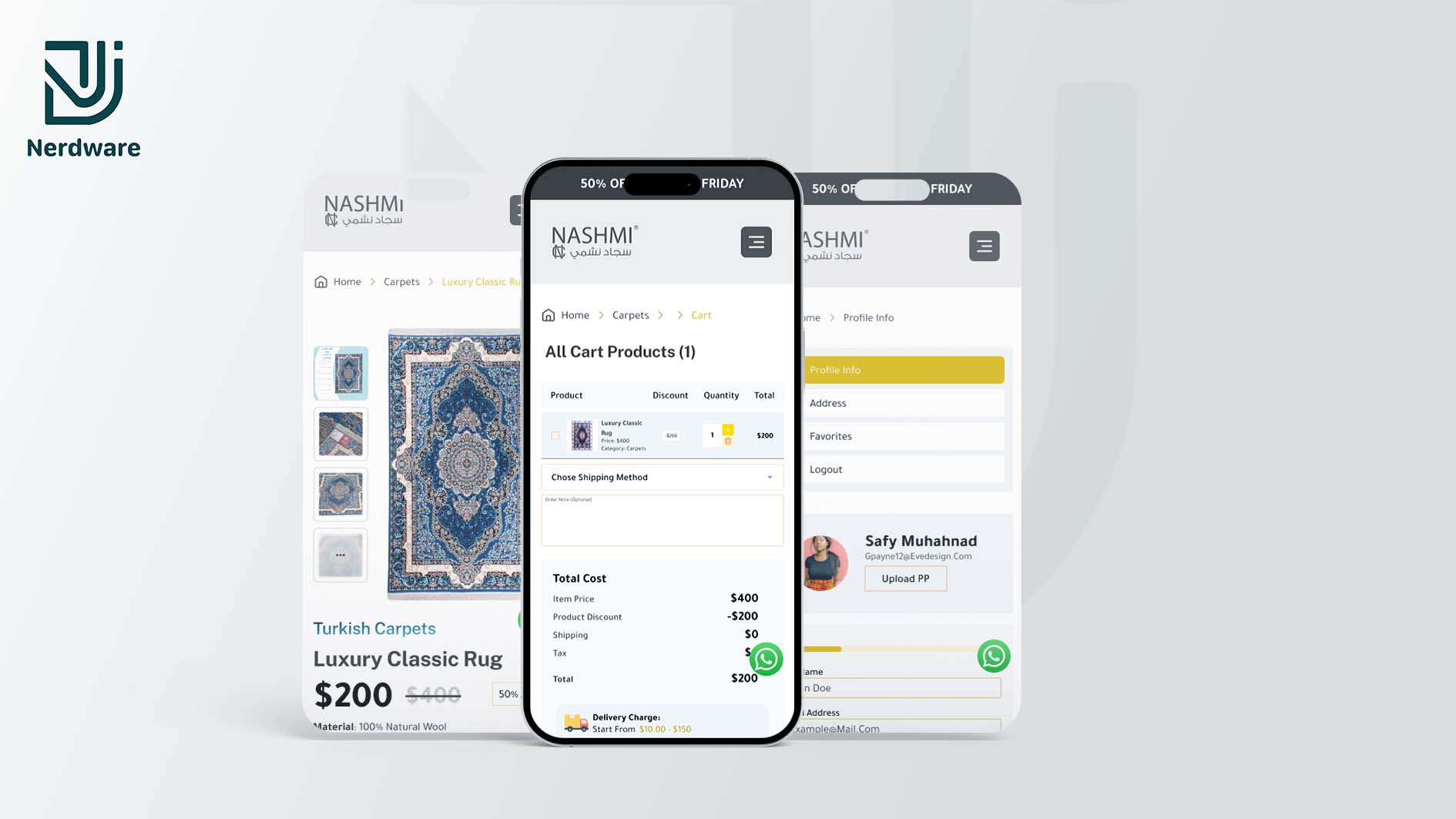 At Nerdware, we take pride in delivering innovative solutions that transform businesses. Our latest project, Nashmi Carpets, is a testament to our expertise in creating comprehensive e-commerce systems that drive sales, enhance customer experience, and streamline operations.